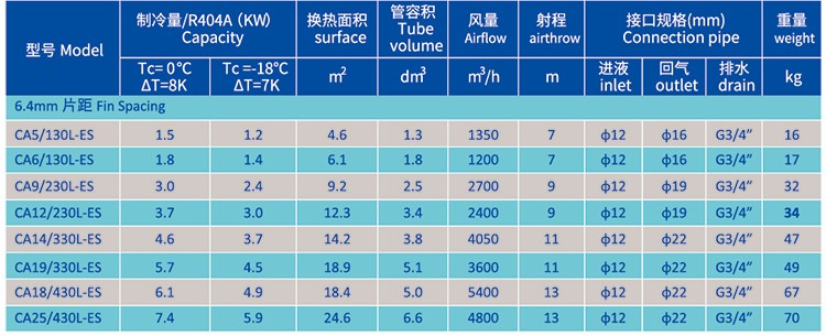 This wall-mounted type of CA series air cooler design with 300mm blowers & 6.4mm fin spacing , apply to cold storage which require cold room temperaturer -18 °C , such as frozen food, meat, cold food and seafood.